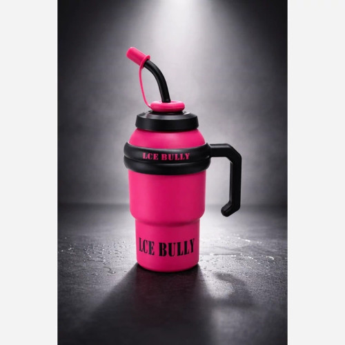 قمقمه استیل Ice Bully تک رنگ صورتی قمقمه ورزشی دسته دار با نی سیلیکونی