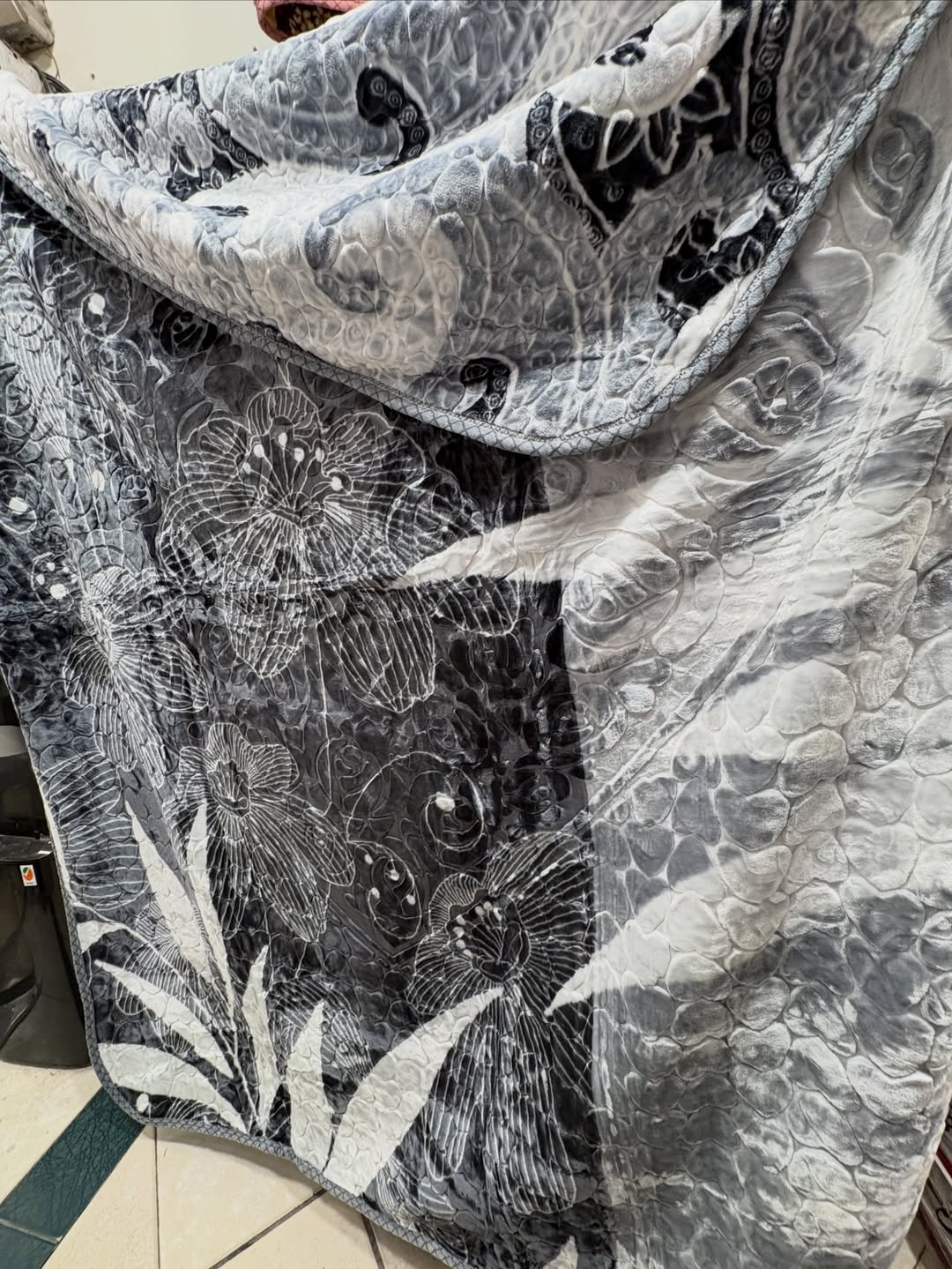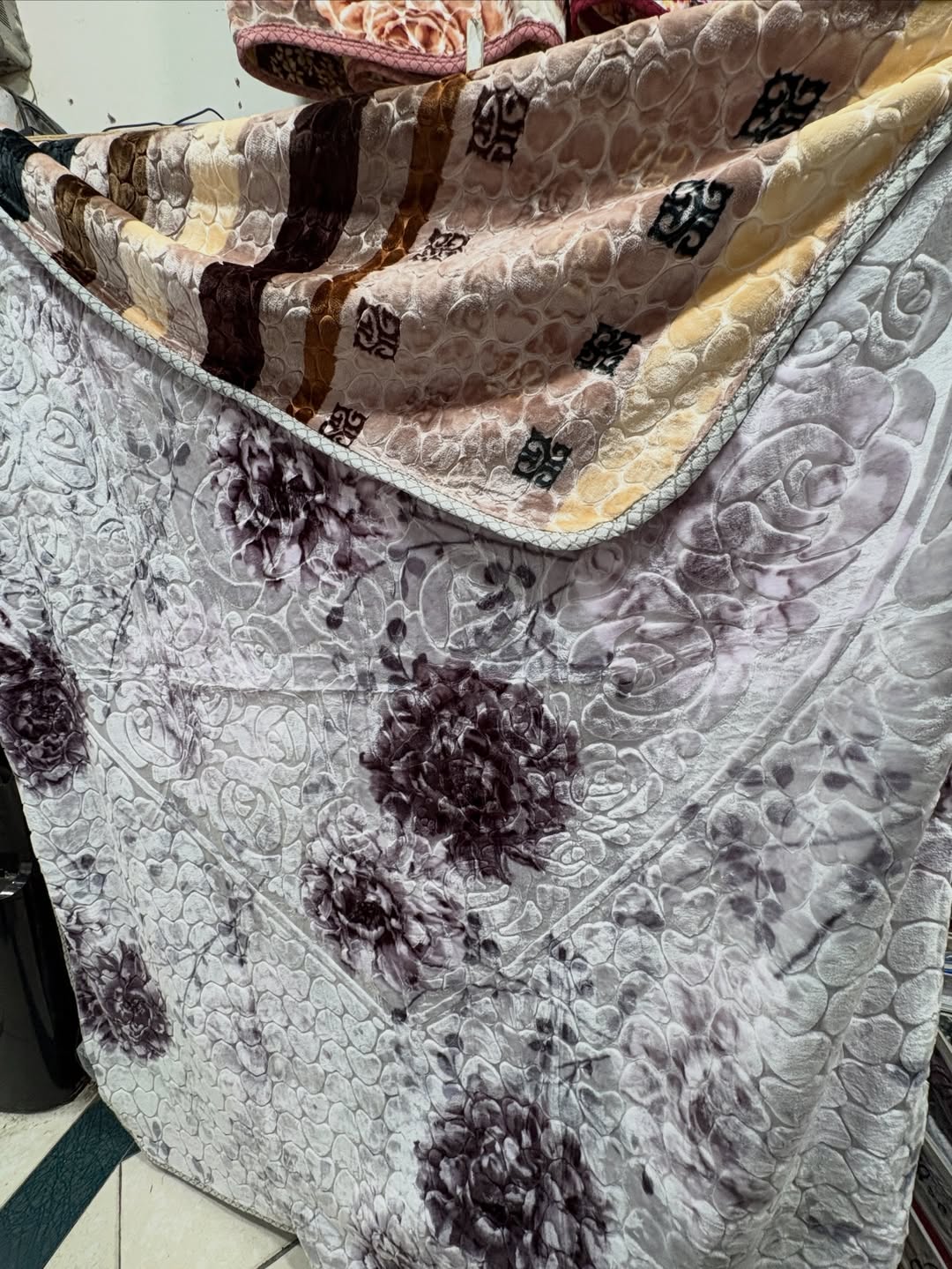 پتو دورو برجسته دورو ابریشمی با وزن ٣ کیلوگرم و دو طرح مختلف در پشت و رو.